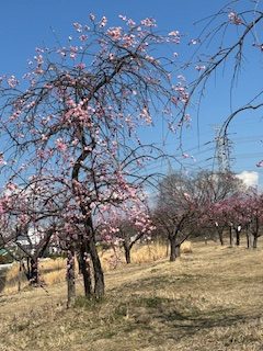 白、淡いピンク、濃いピンクの梅林!
